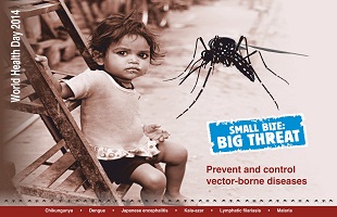 World Health Day (WHD) is celebrated on 7 April every year to mark the anniversary of the founding of WHO in 1948. Every year a theme is selected which highlights a priority area of public health. The WHD campaign this year, ‘small bite: big threat’ is aimed at raising awareness about the threats posed by insect vectors and the bacteria, viruses, and parasites they carry, collectively known as vector-borne diseases (VBDs); and to motivate families and communities to protect themselves through simple measures.
